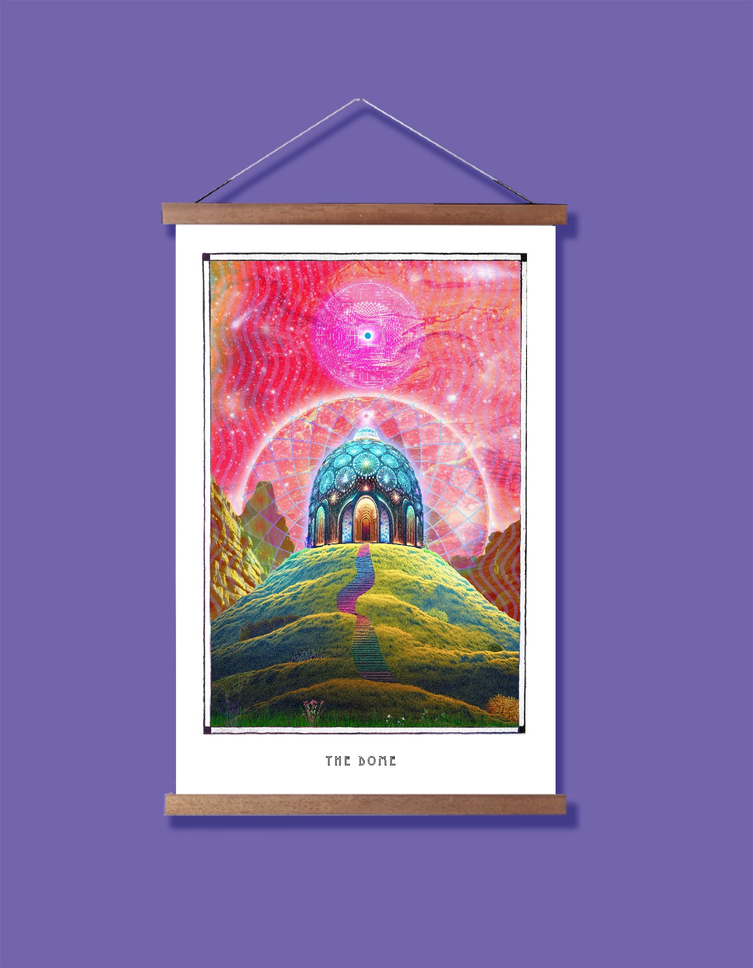 Während eines Blutmondes verwandelt sich der Himmel in ein tiefes, scharlachrotes Glühen, und in einem Moment der Transzendenz offenbart sich ein weißes Loch. Im Gegensatz zu seinem Gegenstück, dem schwarzen Loch, strahlt das weiße Energie aus, während gleichzeitig eine irdische Kraft den Hügel hinaufströmt. An diesem heiligen Ort verschmelzen diese beiden Energien zu einer harmonischen Einheit. Der Tempel erhebt sich majestätisch, ein Symbol der spirituellen Vereinigung der universellen und uralten Kräfte, die dazu bestimmt sind, neue Sterne zu gebären. Die Kuppel lädt dich ein, dich mit dieser urtümlichen Kraft der Schöpfung zu verbinden.