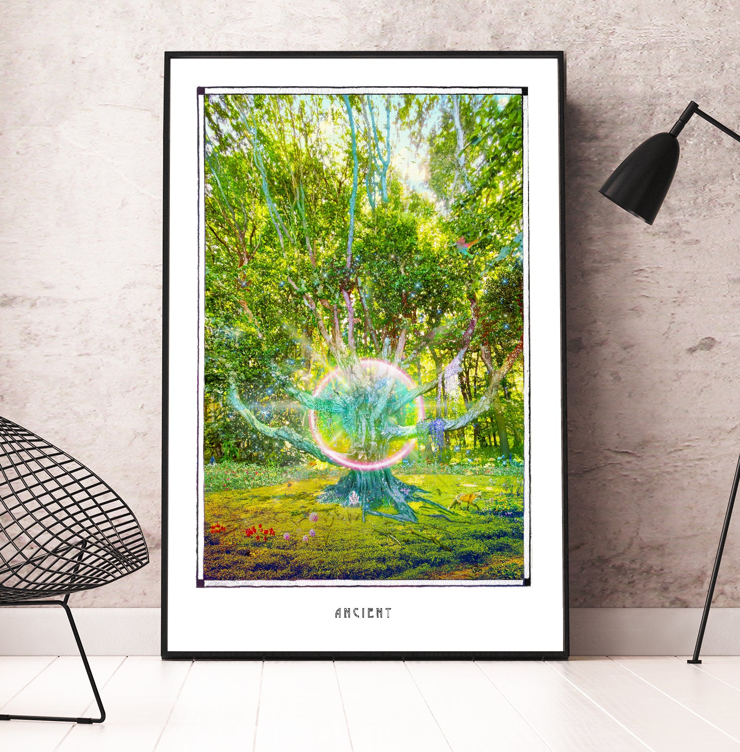 Surrealer Waldposter für Ihre Haus- und Bürodekoration.