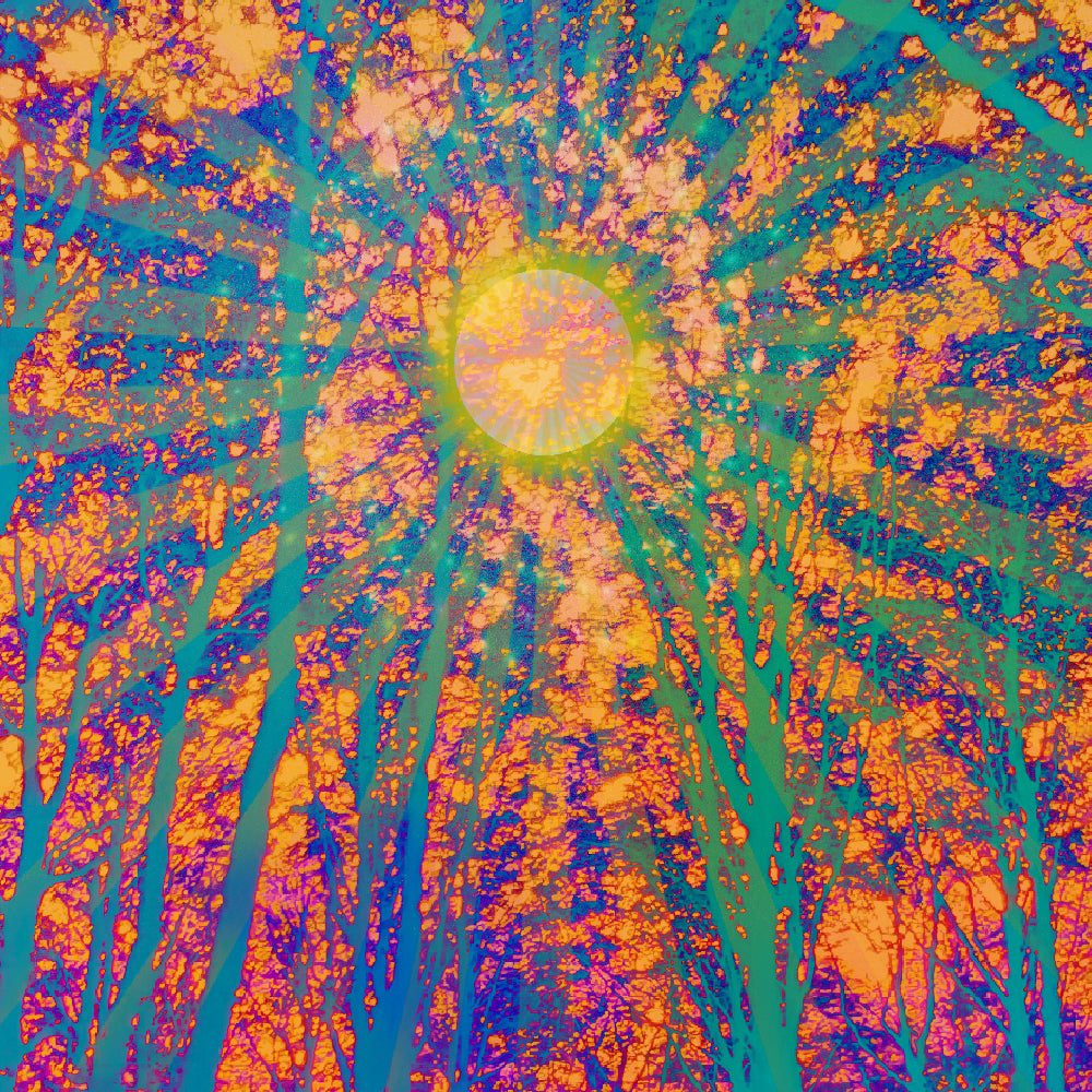 Es gibt einen Wald, in dem der Abend die Welt in sanften Blautönen malt und die Ruhe wie Nebel zwischen jedem Baum schwebt. Während die Sonne langsam sinkt, filtern ihre letzten goldenen Strahlen durch das Blätterdach und werfen ein warmes, traumhaftes Licht darüber. Doch darunter, wo die Stämme hoch und stolz stehen, wird die Rinde und die Äste weich und verwandeln sich in tiefe, ruhige Blautöne.
